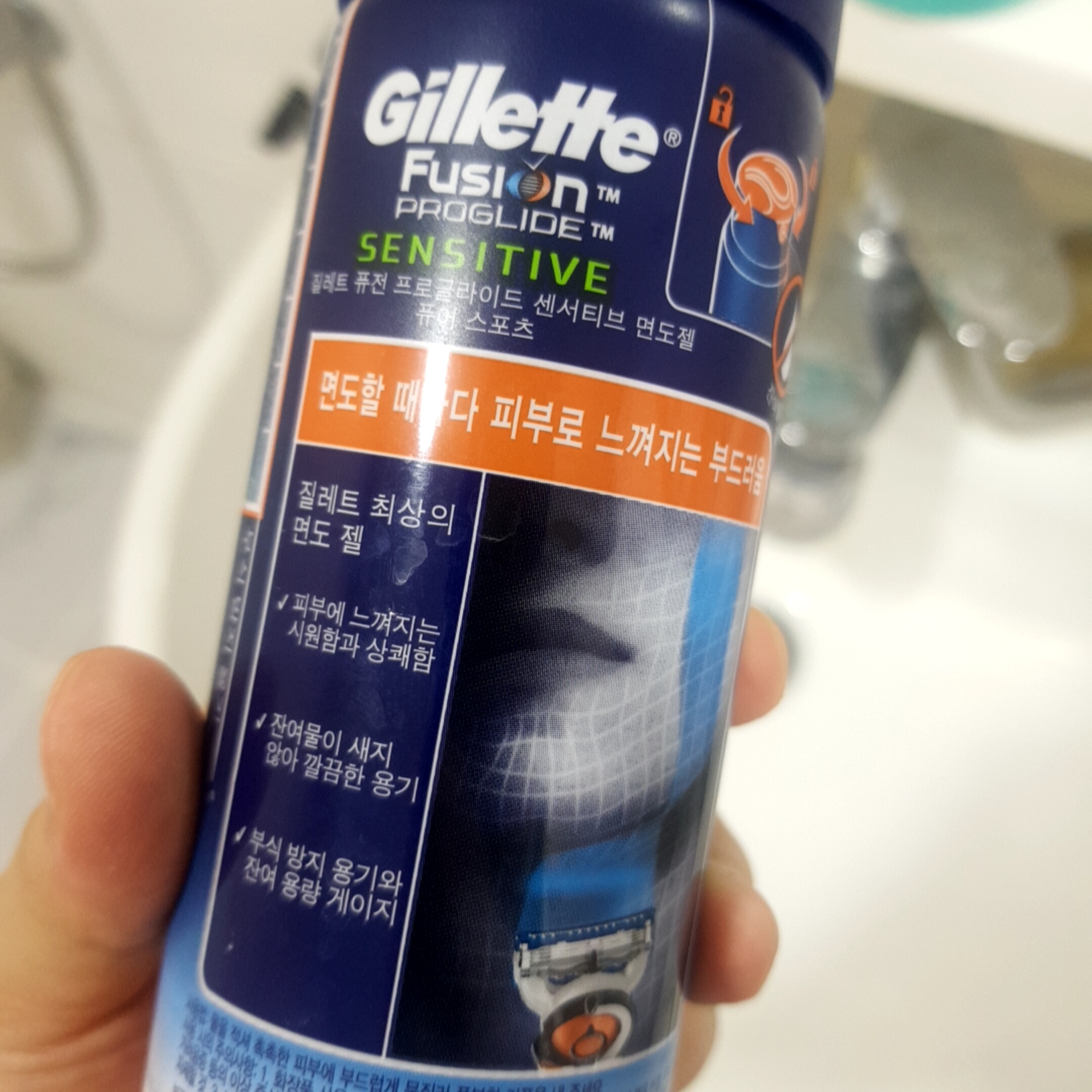 ▲ 특징에보면 면도할때마다 느껴지는 부드러움에 최상의 면도젤이라는 설명이 되어있음. 아니 그나저나 제품명 뭐야 도대체... 왜캐 긴거임....? 질레트 퓨전 프로글라이드 센서티브 쉐이브 젤 퓨어 스포츠 쉐이브 젤.....